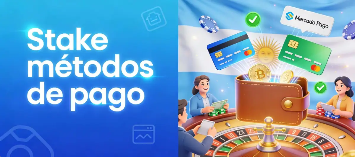 Stake métodos de pago incluyen Mercado Pago (instantáneo, sin comisión), transferencia bancaria local ($2,000 ARS mínimo), criptomonedas (USDT, Bitcoin, Ethereum) y tarjetas de débito. Mercado Pago es el método más usado por 70% de usuarios argentinos por velocidad.